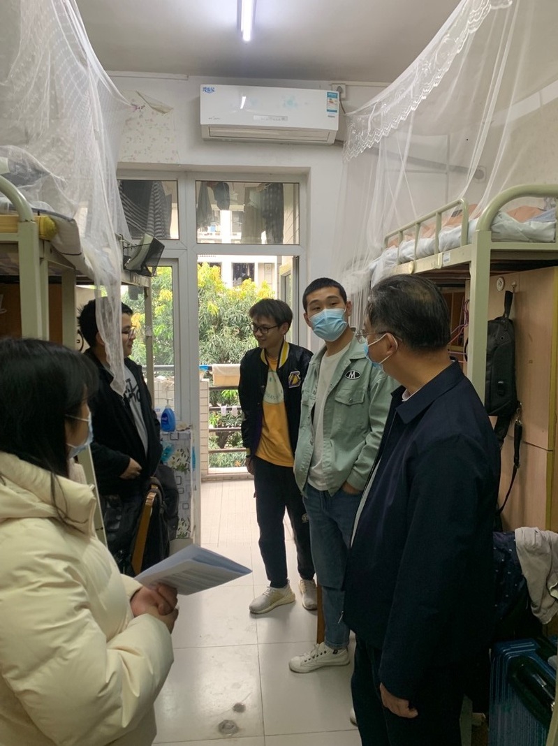 在毕业年级宿舍,关切毕业生就业去向,与同学们深入交流。针对毕业生在就业过程中遇到的问题及时解决。