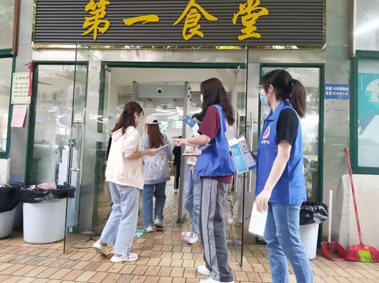 为加强校园疫情防控,2022年4月21日当天,支部全体党员分别在校园第一食堂、第二食堂、第三食堂及图书馆人员聚集场合对未佩戴口罩的人员发放口罩,确保大家在饭堂排队打餐、集体自习时佩戴好口罩,提高疫情防范意识,降低病毒传播风险。