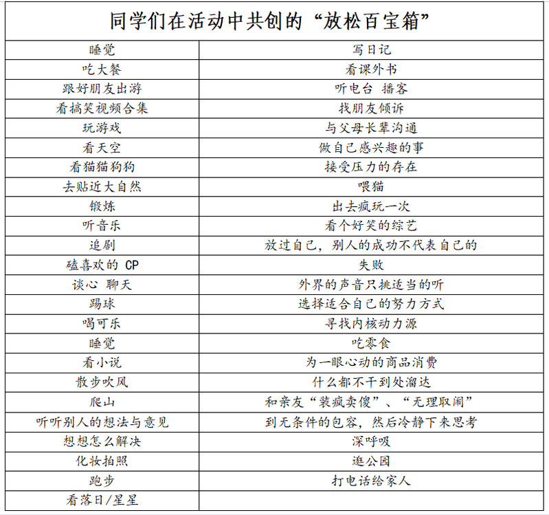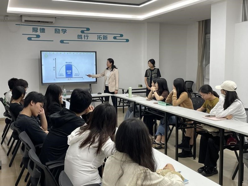 曾老师与简老师通过“正念冥想”的心理疗法让同学们感受内心宁静。两位老师带领同学们深度剖析压力产生的原因及其对身心健康的影响,使同学们能够正视压力、重视学习和掌握调节压力的方法。