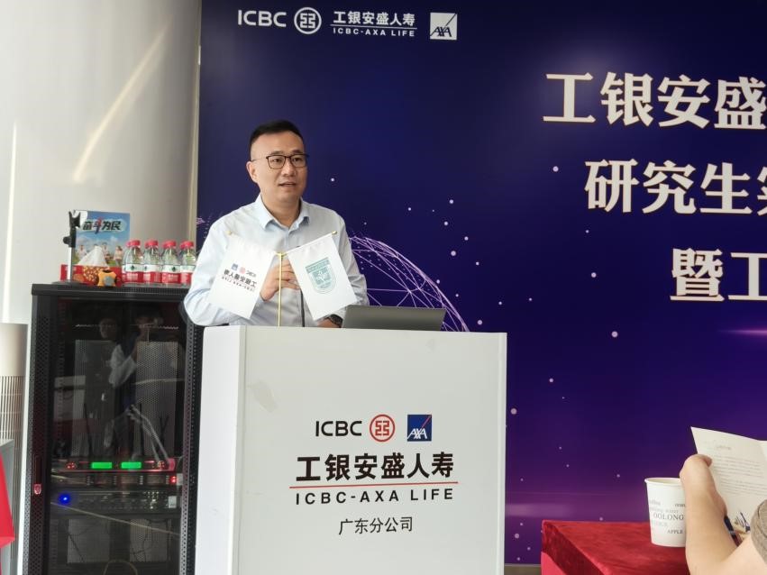 2023年12月11日,工银安盛人寿—云顶国际研究生实习基地(广东省示范基地)揭牌仪式暨工银安盛开放日活动在工银安盛广东分公司举行并取得圆满成功。工银安盛广东分公司总经理徐磊、总经理助理戚小华、业务部经理陈丽萍、人力资源部经理梅兰;云顶国际经理聂普焱、副经理徐忠爱、保险硕士教育中心主任屈韬、副主任刘照德、秘书王亚丽、辅导员肖静以及二十余位硕士研究生出席活动。